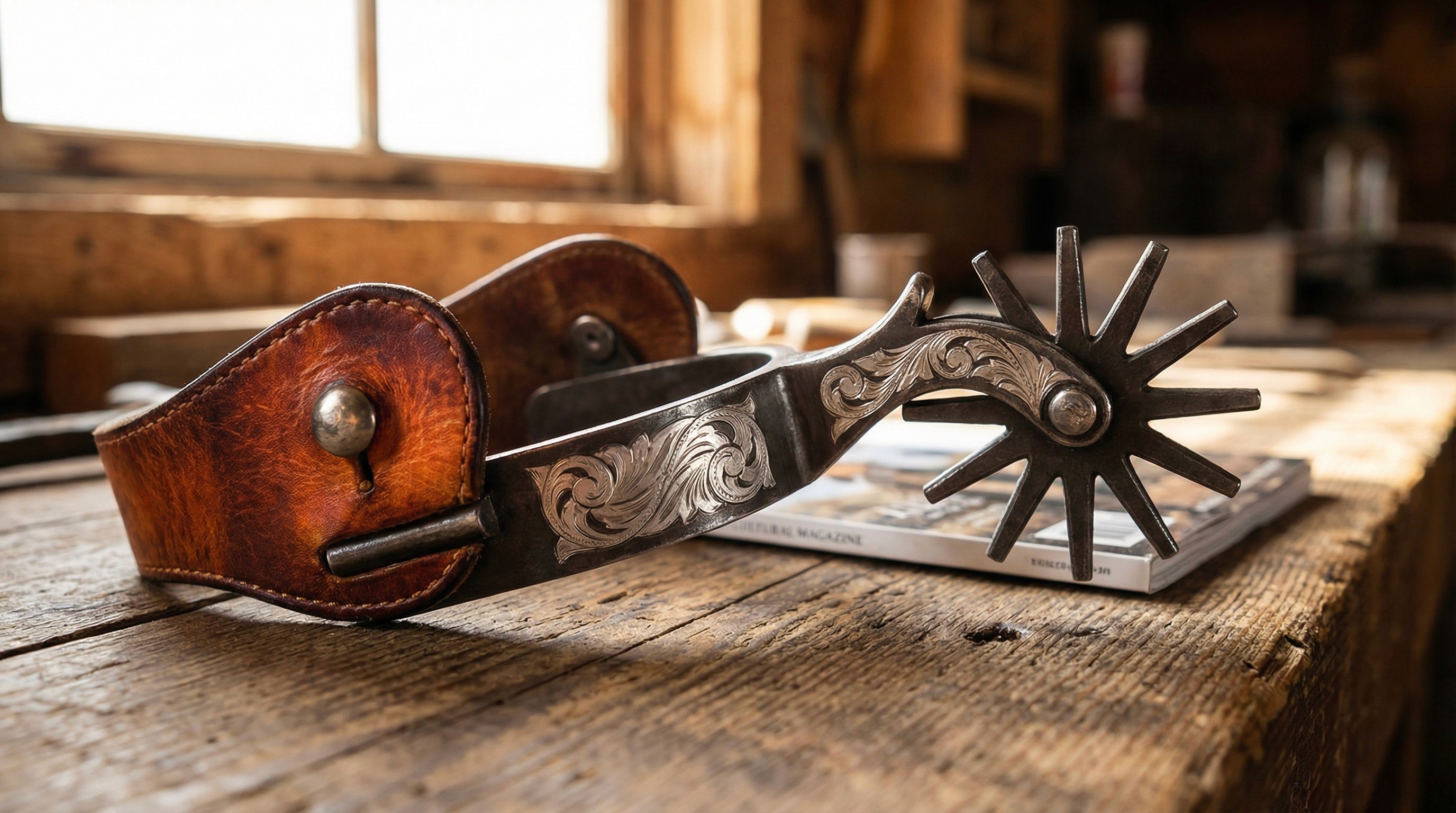 Cowboy spurs are also remarkable examples of metal craftsmanship. Skilled makers shape steel into elegant forms and often decorate them with hand engraving, silver inlays, or distinctive maker’s marks.